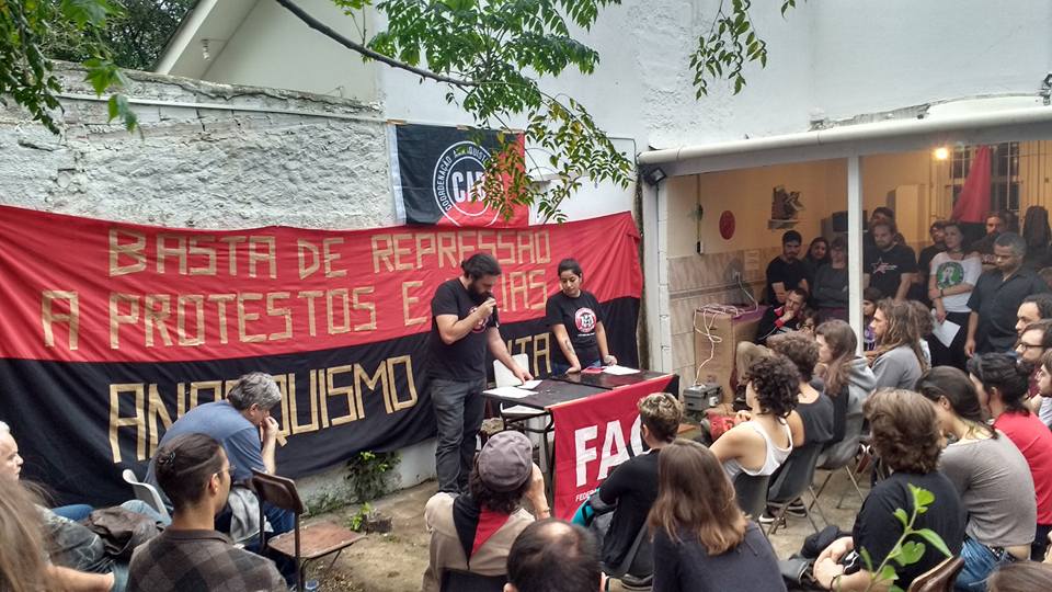 Secondo la notizia divulgata sul G1, saranno attribuiti a questo supposto gruppo i crimini di associazione a delinquere, uso di esplosivi e tentativo di omicidio. L’indirizzo della nostra vecchia sede pubblica, localizzata nella Travessa dos Venezianos, è stata invasa dalla polizia che ha requisito computer, telefoni, libri e altri beni del gruppo culturare che manteneva lo spazio. Abbiamo saputo che il mandato era indirizzato alla nostra Organizzazione. Anche altri locali politico-culturali hanno ricevuto una “visita” della polizia civile.