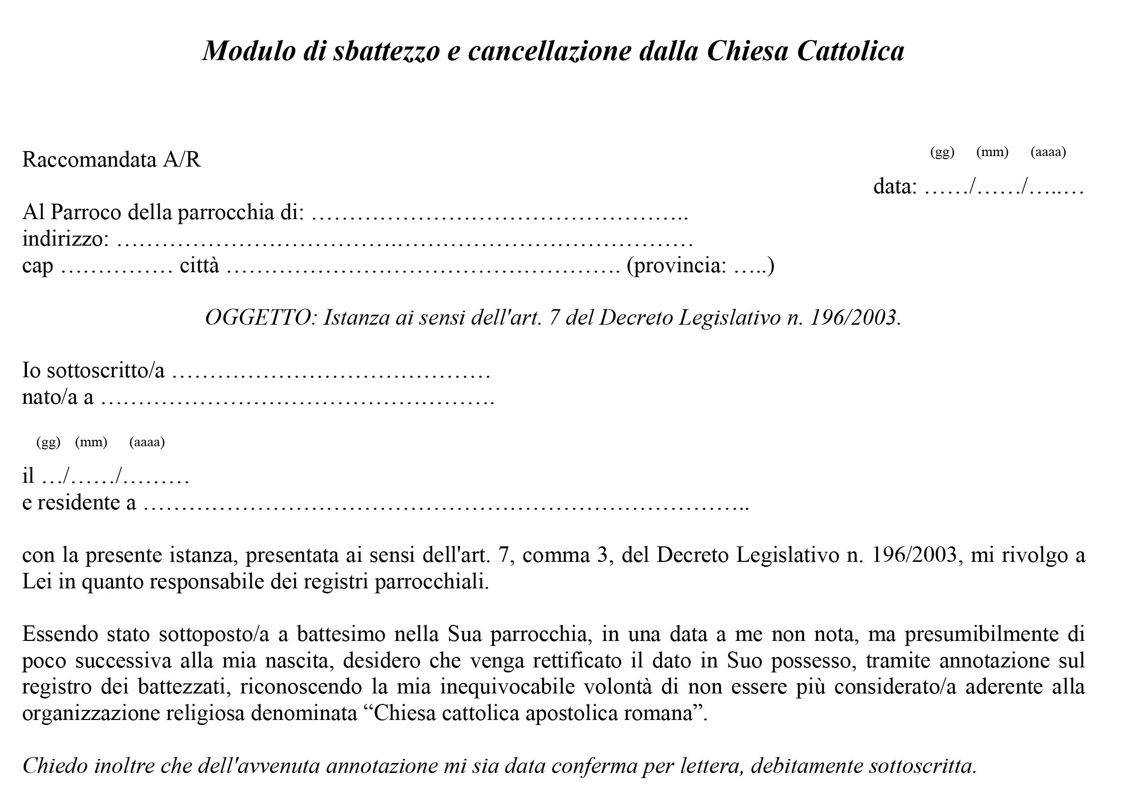 Continua a leggereModulo di sbattezzo e cancellazione dalla Chiesa Cattolica
